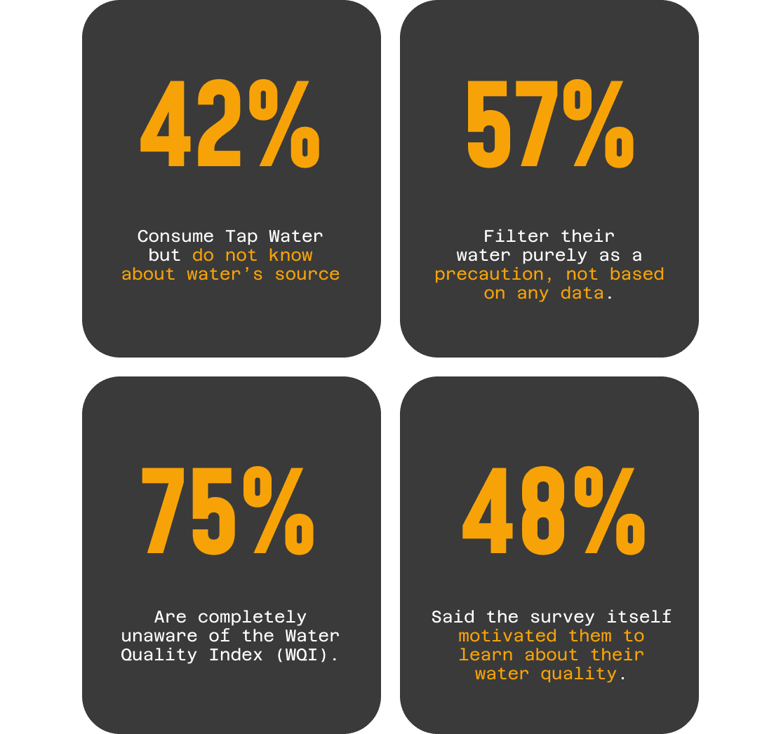 To ensure a human-centered approach, I directed a generative research study to understand student habits and (un)familiarity with water quality. We collected 45 survey responses and conducted 10 in-depth user interviews.