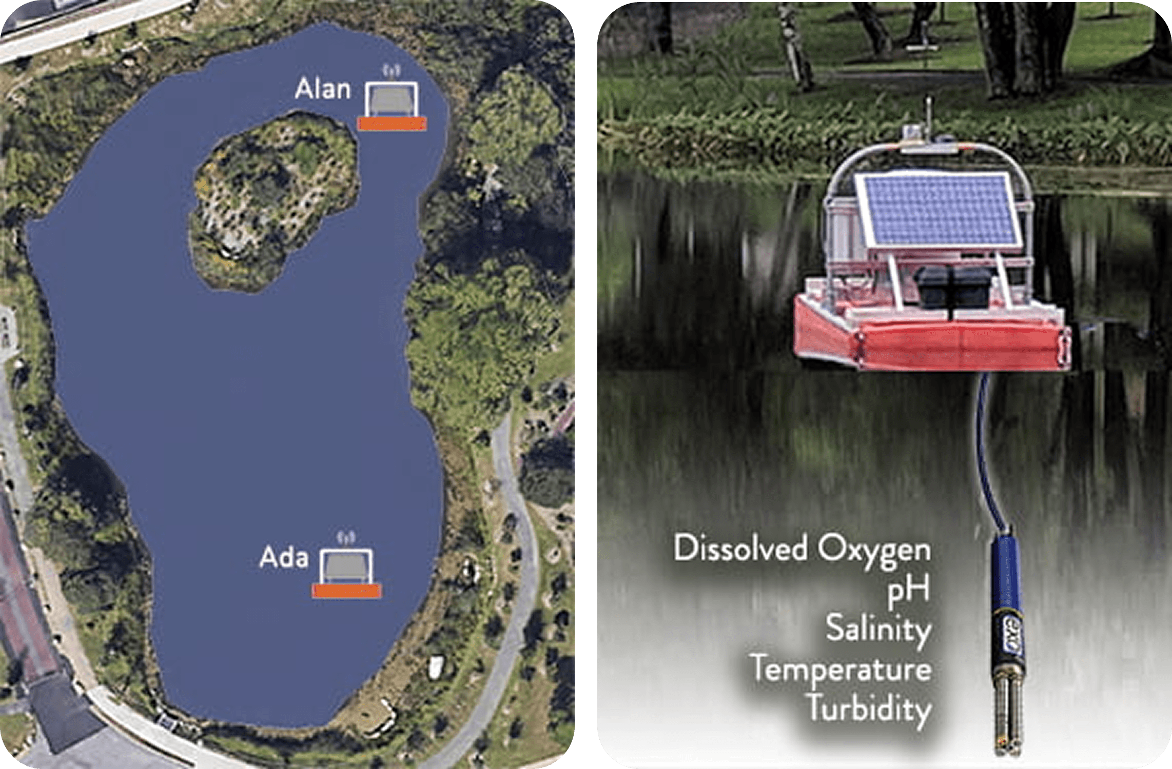Meet ADA & Alan, monitoring stations in pond Chaotte on Pace University Pleasantville Campus