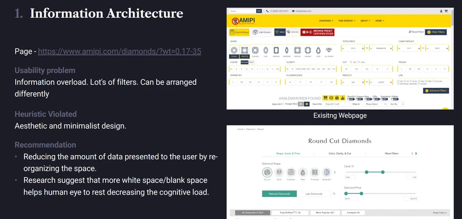 Jewelry retailers today must balance the needs of both B2B and B2B2C customers online. In a two-month contract as a UX Designer for a leading NYC jewelry brand, I conducted a heuristic evaluation and web analytics review to uncover key usability issues.